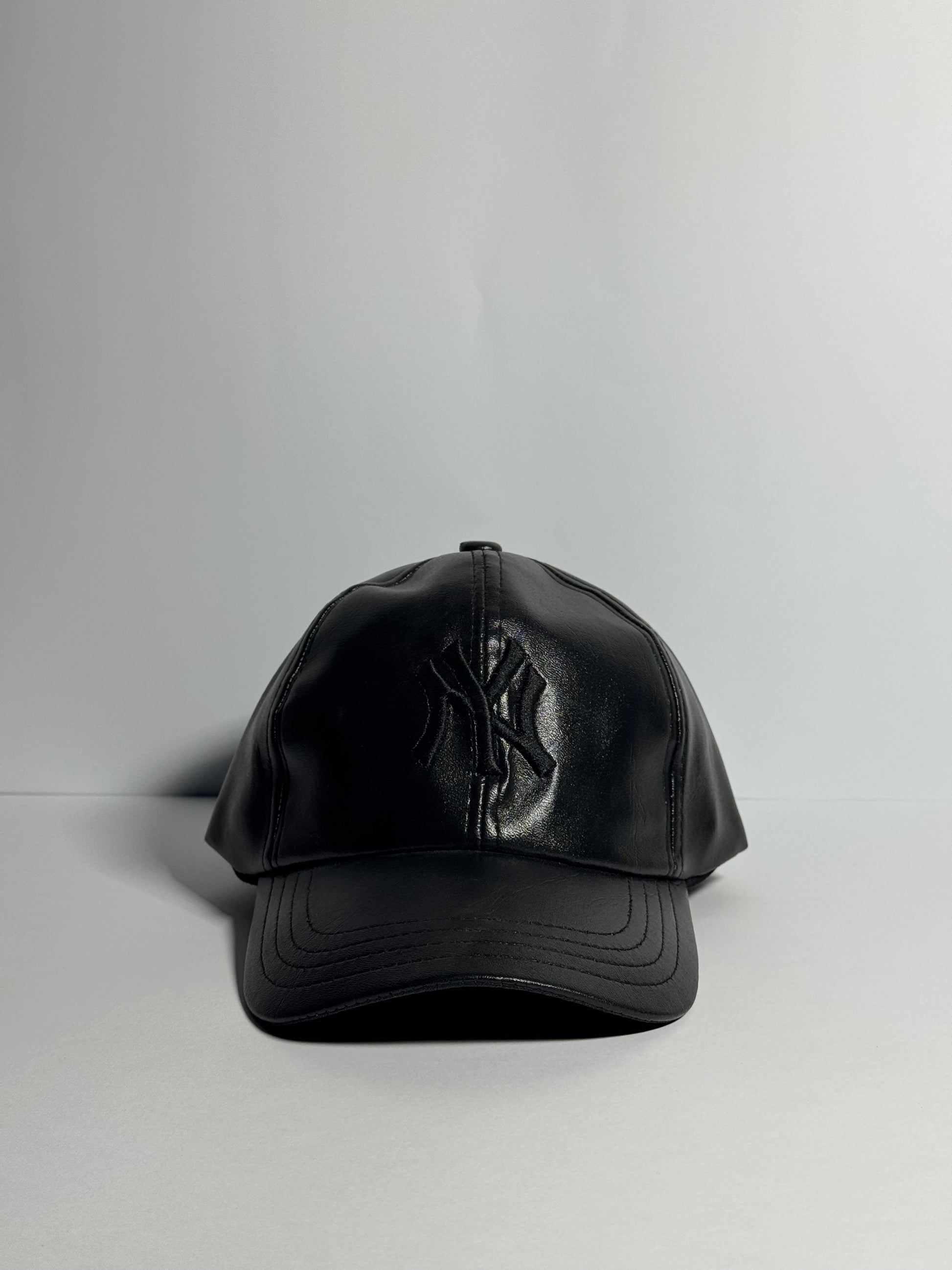 Classic Black Leather "NY" Cap